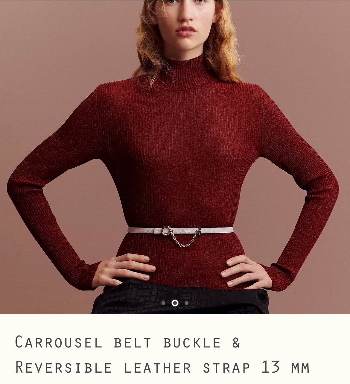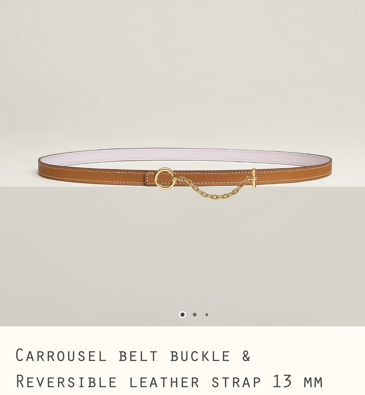 🏁 Hermes 全新🆕 13 mm雙面皮帶 + Carrousel 一個環連一串豬鼻圖案組成皮帶鍍金扣